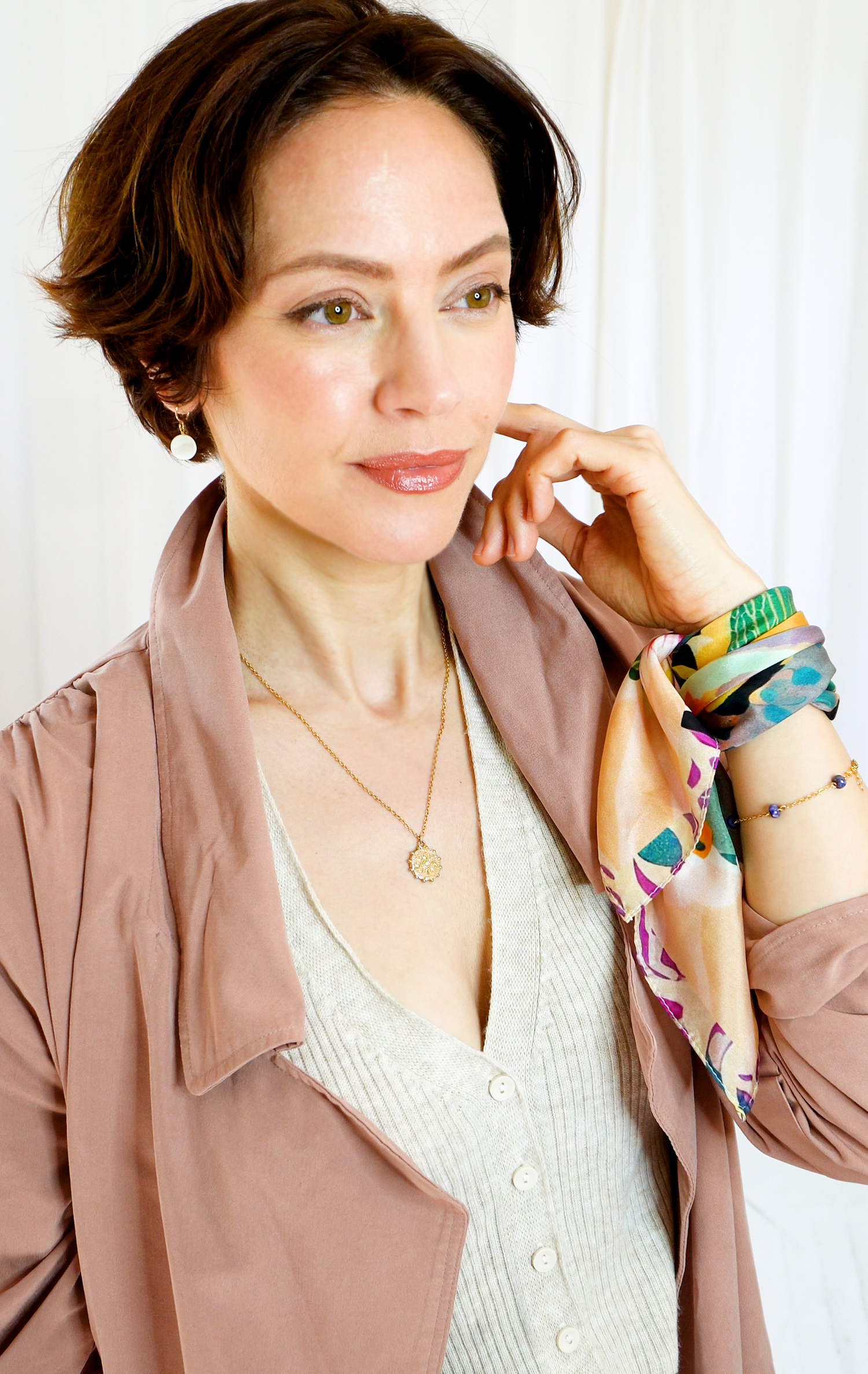 Explore these luxurious silk scarves, accessories and jewelry that I have meticulously crafted by hand, designed, or curated.