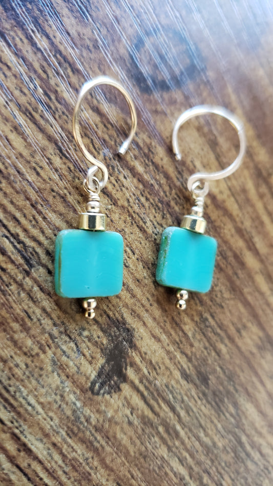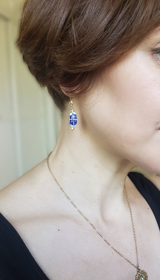Delicate Ceramic Blue and White Drop Earrings | 14k Gold Filled ear wires