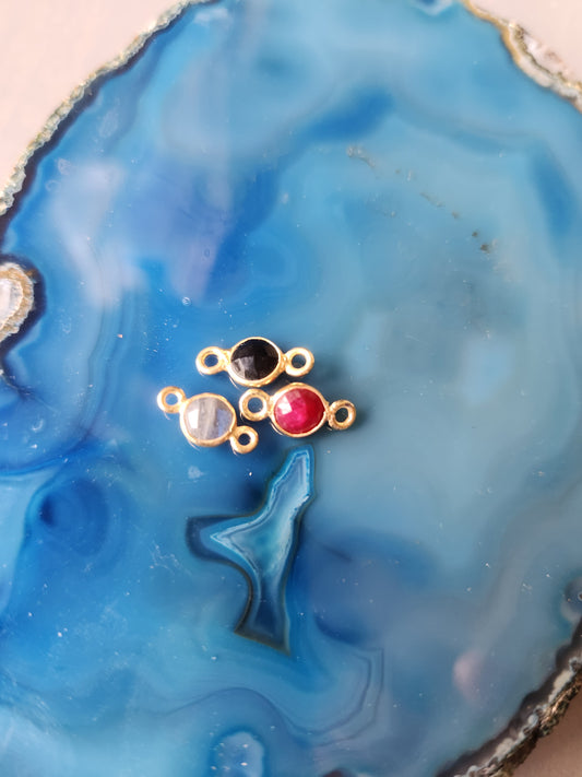 Choupette 16" 14k Gold Filled Chain with Bezeled Gemstone Circle Labradorite, Ruby, Onyx, Emerald, Lapis