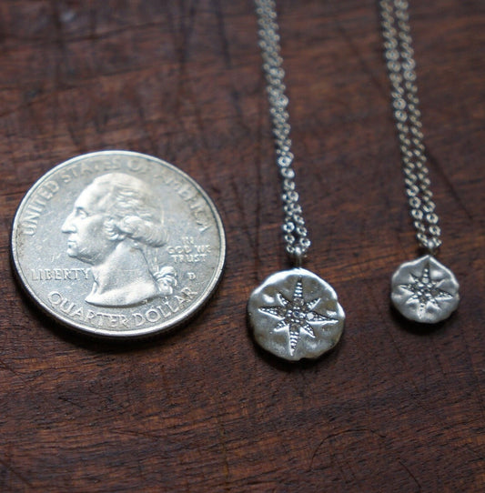 20" Starburst Circle Pendant (10mm) on Sterling Silver Fine Chain Necklace