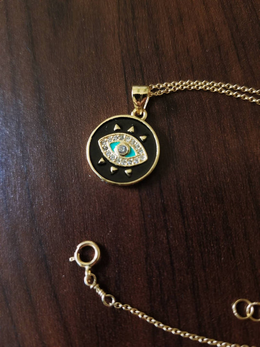 All-Seeing Eye, "Pantheon" Black Enamel necklace, 18" gold filled fine chain gold vermeil pendant