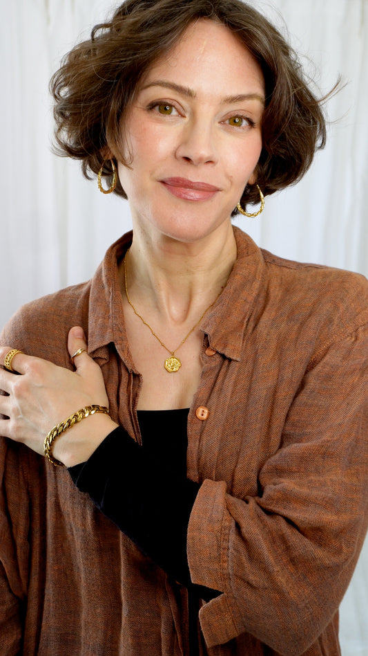 Aubrey Multicolor Gold-plated Coin Pendant on 20" Gold Filled Chain