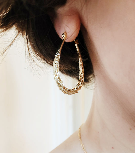 Phoebe Woven Gold Loop earrings (1.5") 14k Gold Plated