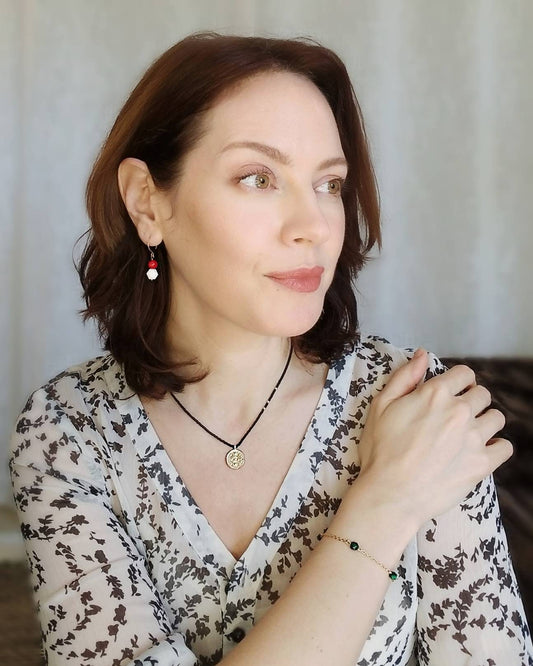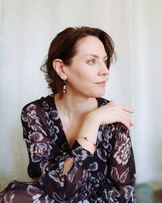 Red Coral "Monceau" bracelet with 14k Gold Filled chain with Blue Labradorite