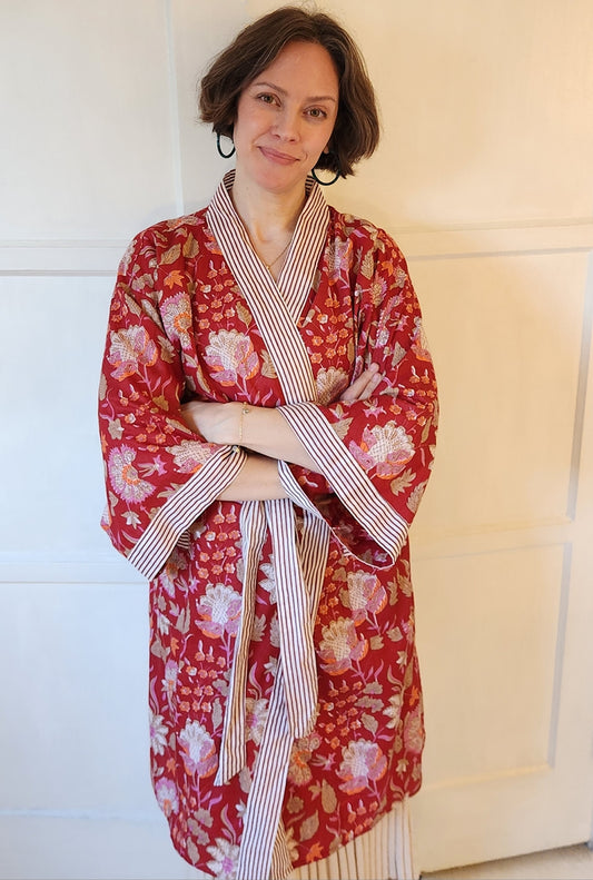 Selah Red Floral Cotton Dressing Robe