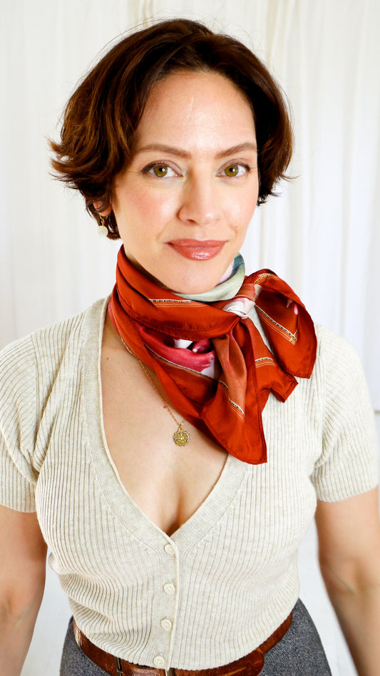 Edie 100% Silk Scarf | Muted Rose Garden Tones | 20 inch
