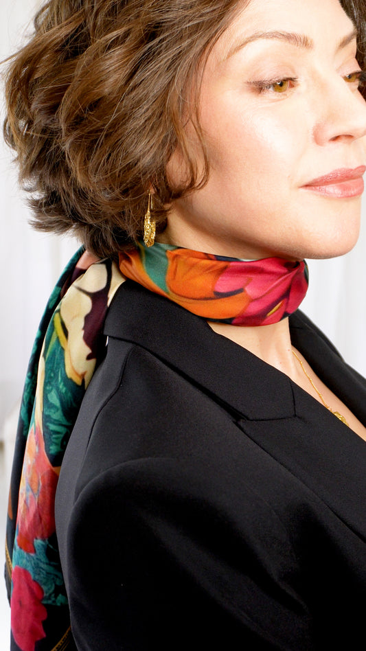 Fionna 100% Silk Scarf | Deep Jewel Tones | 36" Square Twill Weave