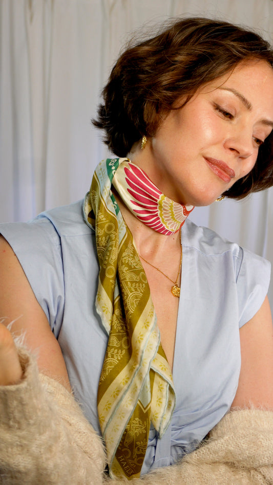 Hazel 100% Silk Scarf | Muted Cream Colors | 32" Square