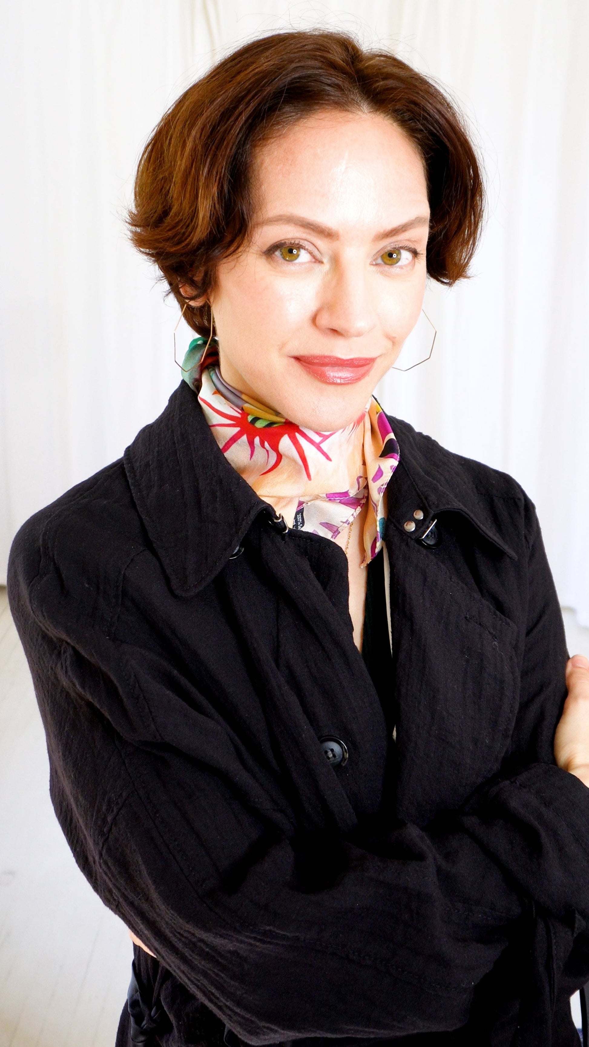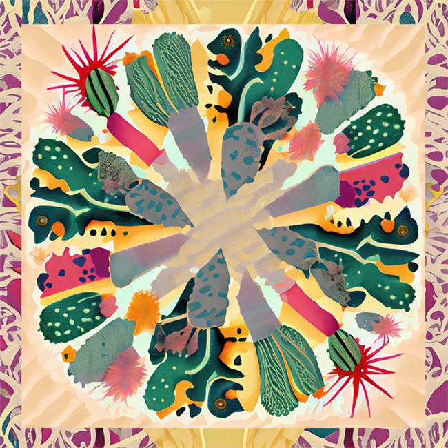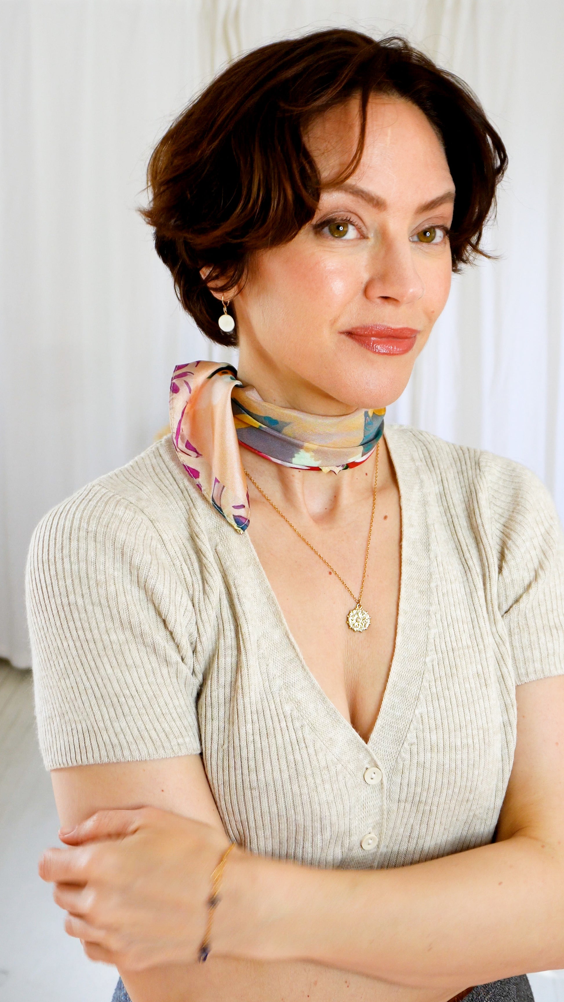Designed to highlight your natural beauty and create a subtle glow, the Ani 100% silk scarf adds a touch of desert flair, featuring fun and playful cactus elements in peaches, pinks, and greens. As you creatively fold the Ani scarf, you will show vibrant greens and pinks, or more muted peaches with every turn. Ani's colors were specifically chosen to showcase you as the natural, beautiful masterpiece that you are.