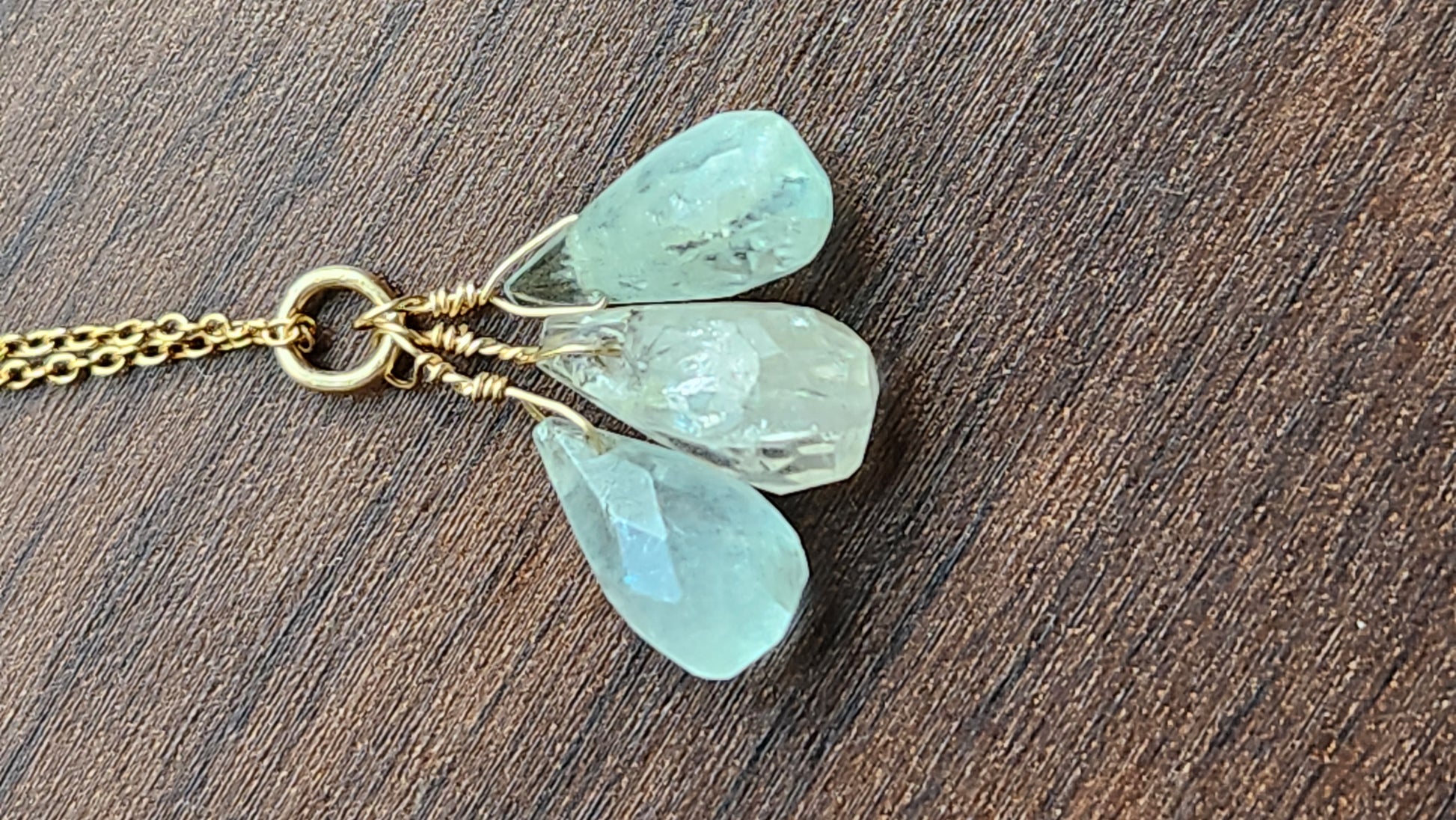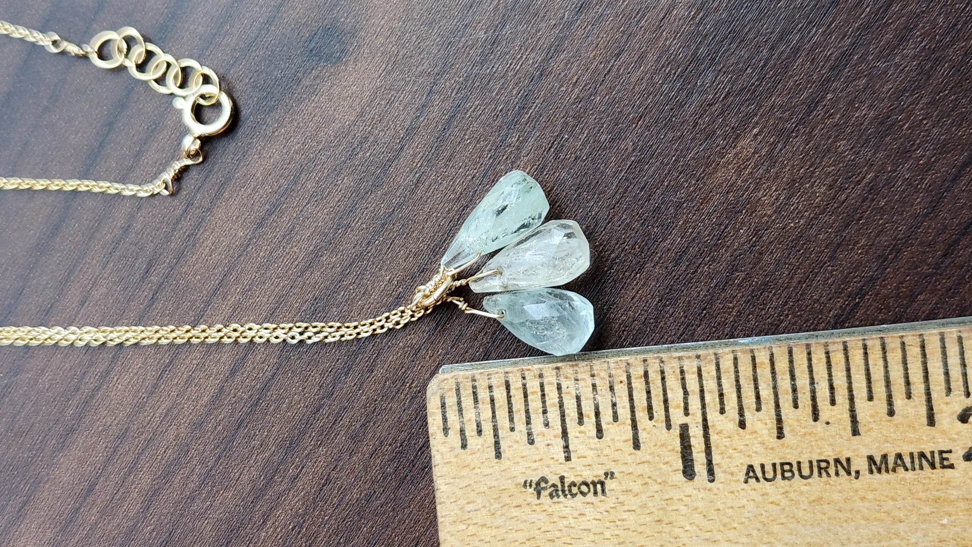 Aquamarine Trio Pendant 18" necklace 14k Gold Filled fine chain