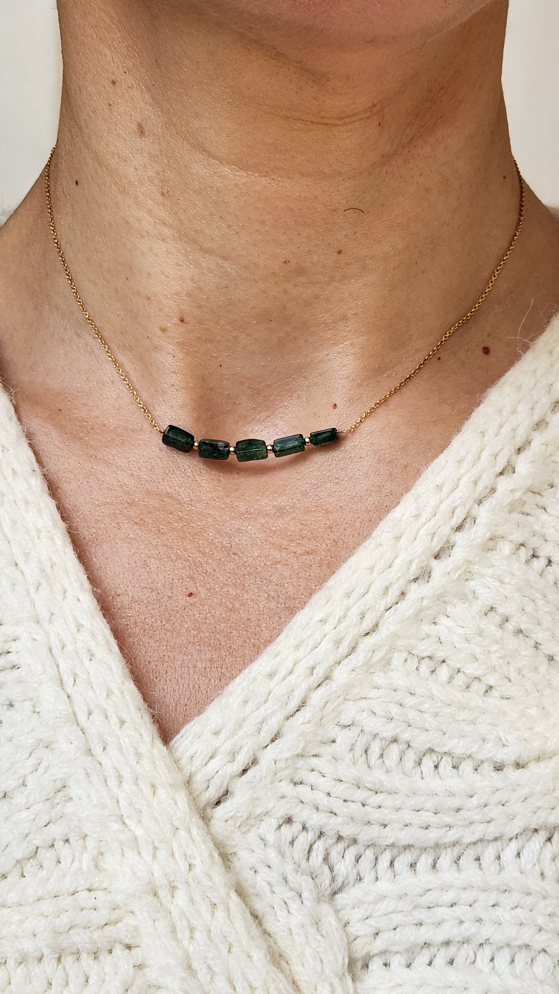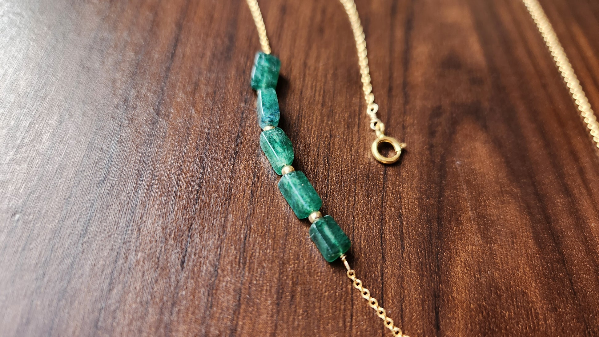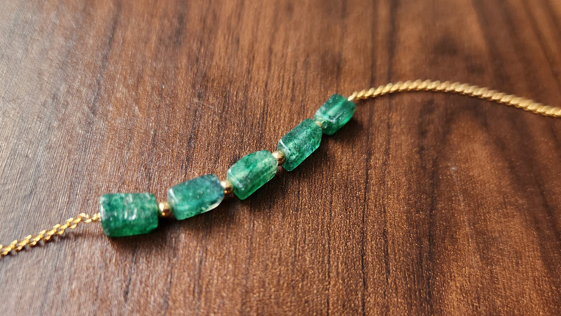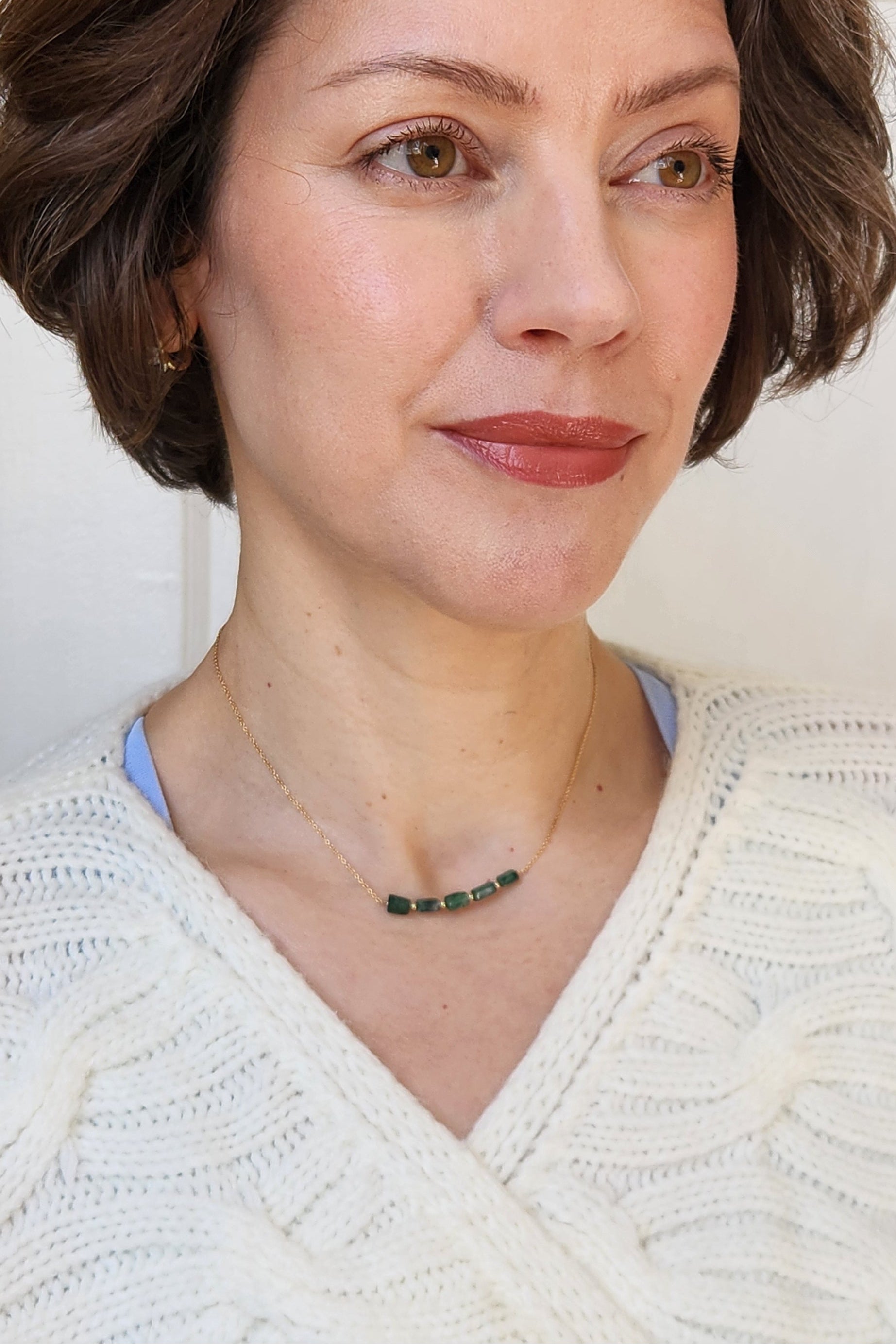 "Cosima" Green Aventurine Row Necklace with 14k Gold-Filled Chain 15"